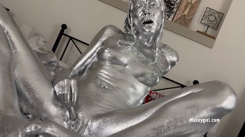 Santana becomes orgasmic in silver paint